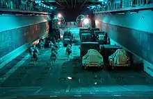 ![]() A US Navy LCAC maneuvers to enter the well deck of the amphibious assault ship USS Kearsarge | |