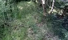 Several plantation areas are present others have been felled. Unusually several roundels or roughly circular plantations are shown on the old maps at Little Sevenacres, on the road to Clonbeith, on the old road from Hullerhill and one that is now merged into the plantation within Sevenacres Wood. Roundels were often planted on estates as landscape features. The surviving roundel near Sevenacres House still has its bank and ditches that were built to keep stock from entering. The 1747 map by Roy shows a number of roundels on the Eglinton Estate lands between High and Mid Moncur Farms.[3] The flora within the Sevenacres Wood roundel is much more diverse than the surrounding self-seeded plantation with old woodland indicators such as wood horsetail, hard fern, wood sorrel, enchanter's nightshade, etc. Sevenacres Wood appears to be of 19th-century origin and had a number of access tracks running through it.