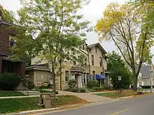 The Langdon Street Historic District is a historic neighborhood east of the UW campus in Madison, Wisconsin - home to some of Madison's most prominent residents like John B. Winslow, Chief Justice of the state Supreme Court, and nationally recognized historian Frederick Jackson Turner. The district has a high concentration of period revival style buildings - many built from 1900 to 1930 to house Greek letter societies, and many designed by Madison's prominent architects.[2] In 1986 the district was added to the National Register of Historic Places.[3]
