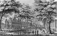 In 1536, Charles V, Holy Roman Emperor, visited The Hague. He decided that the front gardens of all the buildings should be joined together to create a broad avenue. He also ordered that four rows of lime trees be planted, giving it its stately aesthetic. In 1597, stadtholder Maurice, Prince of Orange, proposed to construct a canal along the street. After the Reformation, the Catholic minster was made into a cannon foundry, and a canal could have helped the transport of the heavy cannons. Although a canal was dug along the nearby Mauritskade, a connecting canal along the Lange Voorhout was never constructed, likely due to the high sand bank on which the street was located. In the Golden Age, the very rich settled in palace-like residences on the Lange Voorhout.[2][3][4]