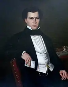 George Marshall had twenty-two enslaved Africans on Lansdowne; and his Louisiana plantation, valued at $119,000, had 104 enslaved Africans.[12][13] In 1860 his Louisiana and Mississippi property was valued at $319,000 (~$8.52 million in 2022).[10] This did not include much of his earned and inherited assets.[10] His father was Levin R. Marshall, a Natchez millionaire planter who owned 1,058 enslaved Africans just before the Civil War.[14] Levin R. Marshall lived at the suburban Natchez estate known as Richmond.[15] Portraits of Levin R. Marshall and George M. Marshall, painted by Louis Joseph Bahin, hang in the dining-room at Lansdowne.[16]