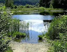 The Fen of Lans (also Lanser Moor or Water Lily Pond) is located north above Lake Lans at an altitude of 582 metres in the Paschberg forest.[1] With an area of 8000 m² and a depth of 3 metres the lake is much smaller than its neighbour.