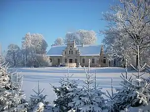 In 1945, 244.2 hectares of land was taken by the State Land Fund, and the manor was incorporated into a Soviet collective farm.[8] The estate was damaged during the Soviet period: farm buildings were run down, and the mansion was used as a granary for the collective farm[1] and a storage barn for farm machinery.