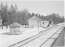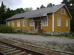 The Lappohja railway station (Finnish: Lappohjan rautatieasema; formerly Lappviikin rautatieasema, Swedish: Lappvik järnvägsstation) is located in the town of Hanko (formerly the municipality of Tenala), Finland, in the village of Lappohja. It is located along the Karis–Hanko railway, and its neighboring stations are Skogby in the east and Santala in the west.[3]