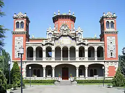 It was completed in 1908, but was never inhabited as intended for the couple, Miguel Larrinaga y Luzárraga and Asunción Clavero.[5] The couple lived in Liverpool, and had two vacation homes in San Sebastián and Málaga. It was intended for them to retire to the palace, but Clavero passed in 1939, with the palace being put up for sale in 1942. The Giesa elevator company bought the palace and its plot, building a factory adjacent to the former residence. The plot was quickly put up for sale afterwards, being bought out by the Society of Mary, who used the palace as a school. Ibercaja Bank purchased and restored the building in 1993. The building is currently used as a documentation center for storing historical information.[6]
