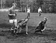 Lars Näsman (right) in game practice with Arto Tolsa (left) and Tommy Lindholm, summer 1970.