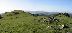 Rocky Ridge reaches an elevation of 2,024 feet (617 m). At the 1,760 feet (540 m) elevation, there is another trail that leads across EBMUD land.[lower-alpha 3] The trail leads to either the Valle Vista Staging Area on Canyon Road in Moraga, or south to the Chabot staging area in Castro Valley.[1]