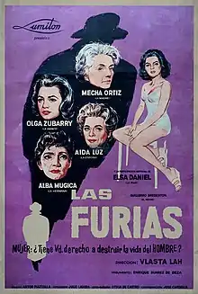 Las furias (Spanish for "the furies") is a 1960 Argentine drama film directed by Vlasta Lah, based on the 1950 play of the same name by Enrique Suárez de Deza. The first Argentine sound film directed by a woman, it was the directorial debut for Lah, who became the only woman film director in 1960s Latin America.[1] Its cast is almost exclusively female, starring Mecha Ortiz, Olga Zubarry, Aída Luz, Alba Mujica and Elsa Daniel as characters whose name are not presented, being introduced as "the Mother", "the Lover", "the Wife", "the Sister" and "the Daughter", respectively.[1]
