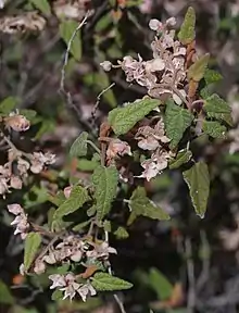 Lasiopetalum molle, commonly known as soft leaved lasiopetalum,[2] is a species of flowering plant in the family Malvaceae and is endemic to the south-west of Western Australia. It is an erect or spreading subshrub or shrub with hairy stems, thick and stiff egg-shaped leaves and pink flowers.