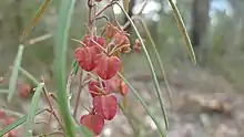 Lasiopetalum rufum is a species of flowering plant in the family Malvaceae and is endemic to the Sydney region of New South Wales. It is a slender, erect or diffuse shrub with linear leaves and small groups of reddish or pinkish flowers.