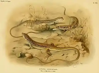 - Latastia longicaudata (Reuss, 1834) - southern long-tailed lizard, common long-tailed lizard