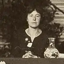 Hughes became associated with the Independent Labour Party (ILP). Hughes spoke publicly against conscription into the armed forces when this became an issue in 1917, and was praised for her stance by the SDPC.[13] Many feminists were opposed to pacifism. Woman's Century responded in late summer 1917 to a report that Hughes and Harriet Dunlop Prenter, described as "prominent suffragists", had drawn a link between suffrage and pacifism in Ontario.[14] According to the editor, Jessie Campbell MacIver, "National Union and Ontario Equal Franchise Association have again and again expressed themselves as repudiating utterly any question of premature peace. Any pacifist literature which has been received from the Hague and elsewhere has been consigned by these societies to the waste-paper basket."[15] Hughes and Prenter seem to have been engaged in a struggle to lead the women's pacifists in Toronto.[16]