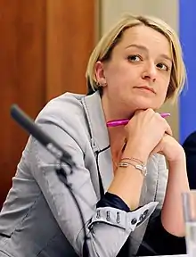 She was appointed in July 2015 as the BBC's political editor, the first woman to hold the position.[19] In January 2016, Kuenssberg was involved in arranging for the Labour MP Stephen Doughty to publicly announce his resignation as a shadow foreign office minister on Daily Politics. The incident was the subject of an official complaint from Seumas Milne, the Labour Party's director of communications, which was rejected by Robbie Gibb, then the BBC's head of live political programmes.[30]