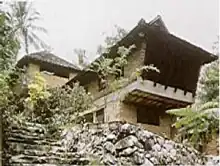 Moving to India in 1945, Baker began to work on leprosy centre buildings across the country, basing himself out of Faizabad, Uttar Pradesh. Baker quickly found the missionary lifestyle - ostentatious bungalows, socialite gatherings, and the plethora of servants waiting hand and foot - too luxurious and not in line with his values and instead decided to stay with the Indian doctor P.J. Chandy and his family. The sister of his host, Elizabeth Jacob (Baker called her "Kuni"), worked as a doctor in Hyderabad with the same leprosy organisation. The two met when Elizabeth came to Faizabad to perform an operation on her brother and to take care of the hospital duties whilst he recuperated. Baker and Jacob found themselves sharing common beliefs and decided to marry. However, as there was considerable resistance from both their families, they decided to wait. Work and travel allowed them only brief periods together, and they finally got married in 1948.[5] For their honeymoon, they traveled to the district of Pithoragarh. Once the local tribals there found out that Elizabeth was a doctor, people came to visit the couple in droves. So immediate was the need for medical help in that remote region that the Bakers decided to build a home and hospital on the slopes of one of the hills on a piece of land no one wanted and stayed there to help the people. The Bakers lived in Pithoragarh for sixteen years[6] before moving to Vagamon in Kerala in 1963 and some years later to Trivandrum. Initially, their time in Pithoragarh was lonely but they quickly became friends with the locals, including the "maldar" Dan Singh Bist who "owned most of Pithoragarh" and helped them in their charitable work.[7] Elizabeth Baker, in her memoir of her time together with Laurie Baker, The Other Side of Laurie Baker, discussed the Berinag tea that they shared that was "very special" to them, as Laurie was a man of exquisite and simple taste, who always loved the simple pleasures of life. In 1988, Laurie Baker became an Indian citizen.[8]