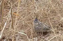 Lavushi Manda is home to rock-associated species such as black eagles, Augur buzzards,[6][16] freckled nightjar, striped pipit, mocking chat and red-winged starling. Dambo grasslands support marsh widowbird and locustfinch. Stanley's bustard, a typical dry grassland species, has been recorded.[16] The coqui francolin was photographed in the park in 2017.[17] Miombo woodlands hold a variety of typical birds of this habitat such as pale-billed hornbill, racquet-tailed roller, Souza's shrike, Böhm's flycatcher, Böhm's bee-eater, Anchieta's barbet, miombo pied barbet, white-faced barbet, Anchieta's sunbird, western miombo sunbird, Hartlaub's babbler,[16] Kurrichane thrush,[16][18] miombo scrub-robin, miombo rock-thrush, Stierling's wren-warbler,[16] red-capped crombec, miombo tit, rufous-bellied tit, black-necked eremomela,[16][18] brown firefinch, Fülleborn's longclaw, black-eared seedeater, Tabora cisticola,[16] Arnot's chat[16][18] and bushveld pipit. All but the last were spotted here in the 1998 BirdWatch Zambia excursion.[16] A July 2018 visit under the eBird program also observed the following additional species in the park: cardinal woodpecker, emerald-spotted wood dove, ring-necked dove, black-backed puffback, white-breasted cuckooshrike, southern black flycatcher, fork-tailed drongo, red-headed weaver, black-crowned tchagra, tawny-flanked prinia, golden-breasted bunting, green-capped eremomela, chinspot batis, yellow-bellied hyliota and swallow-tailed bee-eater.[18]