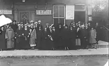 Match-workers on strike in 1924, seen in front of the offices of Le Droit.