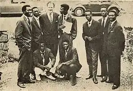 African Jazz members with a man in 1961