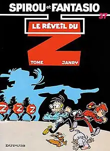 Le réveil du Z, written by Tome and drawn by Janry, is the thirty-seventh album of the Spirou et Fantasio series, and the fifth of the authors. The story was initially serialised in Spirou magazine before being released as a hardcover album in 1986.