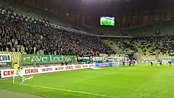 The fans have a friendship with Śląsk Wrocław with which the two clubs fans have had a friendship since 1977, and have had friendly relations since 1967. This is the oldest fan friendship in Polish football.[63][64] During the 2017/18 season, the two sets of fans celebrated their 40th Friendship Anniversary. Games between the two are often called "The Friendship Match".[65][66]
