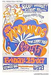 Poster for Led Zeppelin's concert at the University of Surrey (billed as "The New Yardbirds featuring Jimmy Page"), used to help promote its 1968 U.K. tour