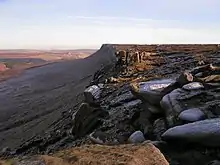 The northern edge of Kinder Scout, a high moorland landscape in the Peak District that became the first English national park in 1951. Clark advised on its purchase, citing an essential link with people in northern cities.[1][2]
