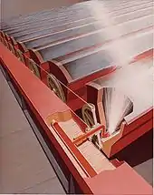 The early success of these concentrating collectors was due in part to grants from the Department of Energy and its predecessor the Energy Research and Development Administration. They created a good deal of publicity for Northrup, Inc., including the cover of Popular Science Magazine[11] and an article in Fortune Magazine that noted, "By squeezing (sic) sunshine optically, Lynn Northrup's unique new rooftop solar collector produces higher temperatures than are obtainable from most solar heating systems now on the market".[12] Technically, these concentrating collectors were among the first commercially successful “east-west” tracking solar collectors. The fundamentals of their systems are still in use in daily azimuth and elevation tracking parabolic collectors. Most linear concentrating collectors are, as of this writing in 2010, of the less costly and less complicated seasonal tracking variety in the form of parabolic troughs.