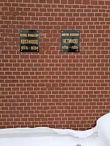 Kostandov's grave sign in Kremlin Wall Necropolis next to that of Dmitriy Ustinov