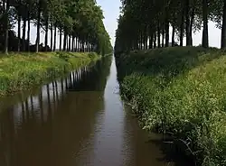 The Leopold Canal (Dutch: Leopoldkanaal or Leopoldvaart, French: Canal Léopold) is a canal in northern Belgium. Construction occurred between 1847 and 1850 after the Belgian government granted permission in 1846. It runs about 40 km (25 mi) westward from Boekhoute to Heist-aan-Zee just south of the Dutch border. It is between 1.2 and 2.3 m (3 ft 11 in and 7 ft 7 in) deep. The canal was proposed by Canon Joseph Andries, local member of the Belgian National Congress, to prevent the Dutch from blocking the discharge of water and inundating the Meetjesland after Belgium's independence from the Netherlands.