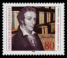 Leopold Gmelin (2 August 1788 – 13 April 1853) was a German chemist. Gmelin was a professor at the University of Heidelberg. He worked on the red prussiate and created Gmelin's test, and wrote his Handbook of Chemistry, which over successive editions became a standard reference work still in use.