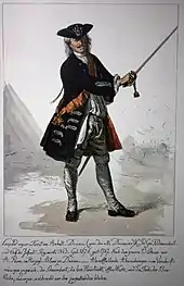 Leopold I, Prince of Anhalt-Dessau (3 July 1676 – 7 April 1747) was a German prince of the House of Ascania and ruler of the Principality of Anhalt-Dessau from 1693 to 1747. He was also a Generalfeldmarschall in the Prussian Army. Nicknamed "the Old Dessauer" (German: der alte Dessauer), he possessed good abilities as a field commander, but was mainly remembered as a talented drillmaster who modernized the Prussian infantry.