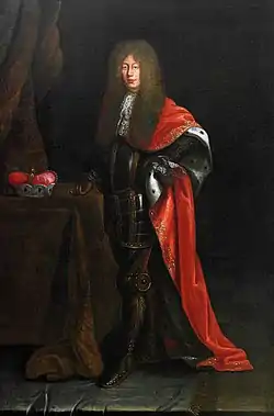 In 1698, shortly after he assumed the title of Prince of Dietrichstein following his father's death, Leopold Ignaz Joseph was named Knight of the Order of the Golden Fleece as the Knight 591 since his foundation. His first high appointment took place only in 1705, when he was named a member of the Imperial Chamber. His renewed career was stopped by his early death in 1708 at the age of 48, from tuberculosis.[1]