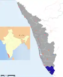 | Known only from the Thiruvananthapuram district (blue) of Kerala State (grey), India | |