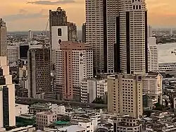Lerdsin Hospital (middle), surrounding by skyscrapers in Bang Rak District