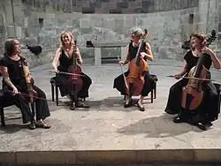 Les Escapades from Karlsruhe is a German ensemble for early music established in 2000. The four viola da gamba players, Sabine Kreutzberger, Franziska Finckh, Adina Scheyhing and Barbara Pfeifer, studied in The Hague, Basel and Trossingen. They play in the instrumentation as pure Gambenconsort or in cooperation with other artists or choirs. The name of the ensemble promises unexpected access to the musical world of Renaissance and Baroque music.