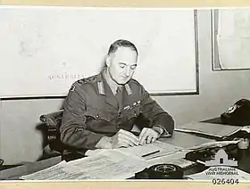 Beavis was promoted to colonel within weeks of the commencement of the Second World War[6] and joined the Second Australian Imperial Force (AIF) in 1940. He served in the Middle East on the staff of Lieutenant General Sir Thomas Blamey, the commander of the AIF, holding a number of supply related positions. Promoted to the temporary rank of brigadier in December 1940,[6] he was successful in a new role of director of ordnance services and was made a Commander of the Order of the British Empire in 1942. Promoted to temporary major general in April 1942,[6] he returned to Australia to succeed Major General Edward Milford in the position of master-general of the ordnance. He was tasked with co-ordination of private and government manufacturers and producers to provide logistic support for Australia's soldiers, both at home and overseas. As the war came to a close, he found his work becoming more difficult as Australia began to move away from a wartime footing.[1]