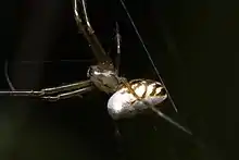 3. โ†‘ Ron Atkinson. "Leucauge dromedaria". Find A Spider Guide. Retrieved 29 February 2020.