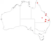 This leucopogon grows in south-east Queensland.[6]