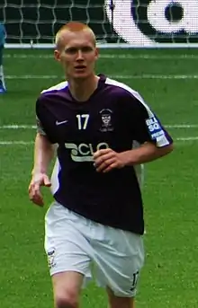 ![]() Mackin playing for York City in the 2009 FA Trophy Final | |||