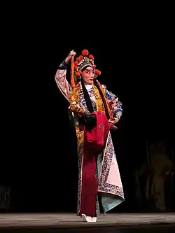 A Peking opera actor portraying Li Cunxiao during a performance by Shanghai Jingju Theatre Company on December 21, 2014, in Tianchan Theatre, Shanghai, China.
