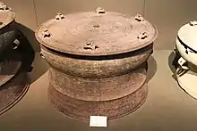 The Li-Lao bronze drums or Heger type II drums are a type of ancient bronze drums found in Southern China and Northern Vietnam invented and used by Tai-Kadai-speaking (or specifically Tai-speaking) ethnic groups who were known to Chinese as Lǐ (俚) or Lǎo (獠) and who historically inhabited the Red River Delta from the 3rd to 8th century AD[1][2] and later the Muong people, an ethnic minority in Northern Vietnam, from the 10th to 12th century. Classified by Franz Heger as type II to distinguish with the Dian-Dong Son drums or Heger type I, the Karen drum or Heger type III. Li-Lao drums were found in Guangdong, Guangxi, the Red River Delta and the Muong hills.[3]