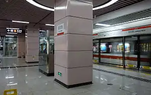 Lianhua West station (simplified Chinese: 莲花西站; traditional Chinese: 蓮花西站; pinyin: Liánhuā Xī Zhàn; Jyutping: Lin4faa1 Sai1 Zaam6; lit. 'Lotus West station') is a metro station on Line 2 of the Shenzhen Metro. It opened on 28 June 2011 as simplified Chinese: 莲花山西站; traditional Chinese: 蓮花山西站; pinyin: Liánhuā Shān Xī zhàn; Jyutping: Lin4faa1 Saan1 Sai1 Zaam6; lit. 'Lotus Hill West station'. It is located under Xinzhou Road and Hongli West Road.