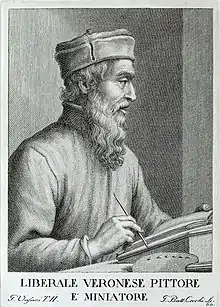 He was a pupil of the painter Vincenzo di Stefano, although he was strongly influenced by Andrea Mantegna and Jacopo Bellini. He was featured in the Vite of Giorgio Vasari. In Verona, he painted an Adoration of the Magi in the Duomo, and another for the chapel in the bishopric. For the church of San Bernardino, he painted in the chapel of the company of the Maddalena. He also painted a Birth and Assumption of the Virgin. At the Brera Gallery, there is a St. Stephen. There are illuminated books by him in cathedral of Chiusi. The St Sebastian in the Princeton University Art Museum is attributed to Liberale.[1]