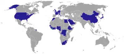 1. 1 2 3 4 5 6 7 8 9 10 11 12 13 14 15 16 17 18 19 20 21 22 23 24 25 "Foreign Missions". Ministry of Foreign Affairs of Liberia. Retrieved 24 October 2023.
