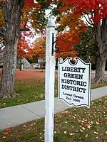 The Liberty Green Historic District consists of six 18th-century houses and stone walls surrounding a triangular common.[3] The six contiguous properties included within the district are defined on the National Register of Historic Places and consist of four Colonial structures, one Federal/Greek Revival, and one undefined style structure.[4] The corner property of Liberty Street and East Main Street is an established bed and breakfast.[5]