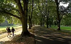 The avenue is said to have begun in 1655 as path between the town market and Lichtenthal monastery. It was developed from 1850 to 1870 at the instigation of the casino Bénazet, and planted with a wide variety of trees and woody plants. Today the avenue contains about 300 types of native and exotic woody plants, including alders, azaleas, chestnuts, ginkgos, limes, magnolias, maples, oaks, and sycamores. The avenue terminates at its northwest end in a kurgarten, and at the southeast in a dahlia garden containing busts of Clara Schumann, Johannes Brahms, and Robert Stolz.