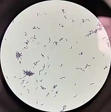 | 1000x magnification of a Gram-stained sample of Ligilactobacillus animalis | |