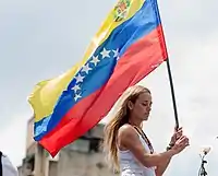 Lilian Adriana Tintori Parra (born 5 May 1978) is a Venezuelan activist, athlete, and television and radio host. Tintori is the wife of Leopoldo López, a Venezuelan politician sentenced in 2015 to nearly 14 years in prison for inciting violence during street protests the year before.[1] She has also led groups who have opposed the government of Venezuelan President Nicolás Maduro.[2]
