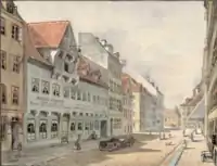 The four-bay townhouse at No. 6 was built over three storeys for metalsmith Ulrich Grab in 1675 and later heightened with one storey in 1770.[4]