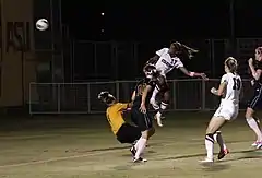 Taylor (17) heads the ball past Arizona State's goalkeeper on October 14, 2011, in Tempe, Arizona