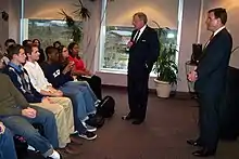 Linwood H. Rose introducing Virginia governor Mark Warner at a meeting of JMU College Democrats